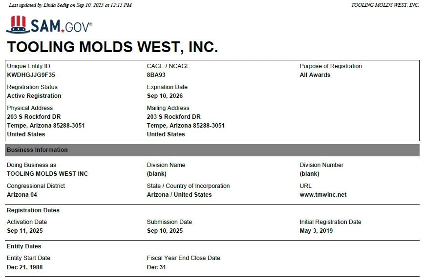Copyright © 2025 TOOLING MOLDS WEST, INC. - All Rights Reserved.